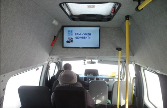 Реклама на мониторах в маршрутке на фото выше