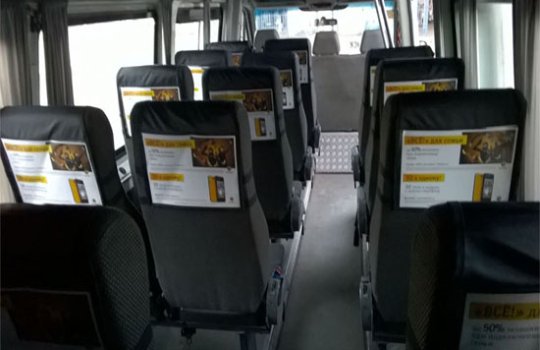 Реклама на подголовниках в маршрутке на фото выше